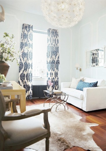 When installing draperies for a client, we are often asked advice on the proper placement of hardware in relation to the window, moldings, and ceiling. It is commonly thought that hanging the hardware as high as possible serves to increase one's perception of the ceiling height and overall size of the room. But there seem to be plenty of varying opinions and options out there on this topic!