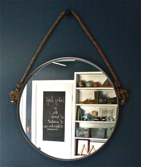 Saf's mom crafted this DIY mirror as a knock-off/alternative to the pricey Restoration Hardware rope mirror.  See her step by step instructions here!